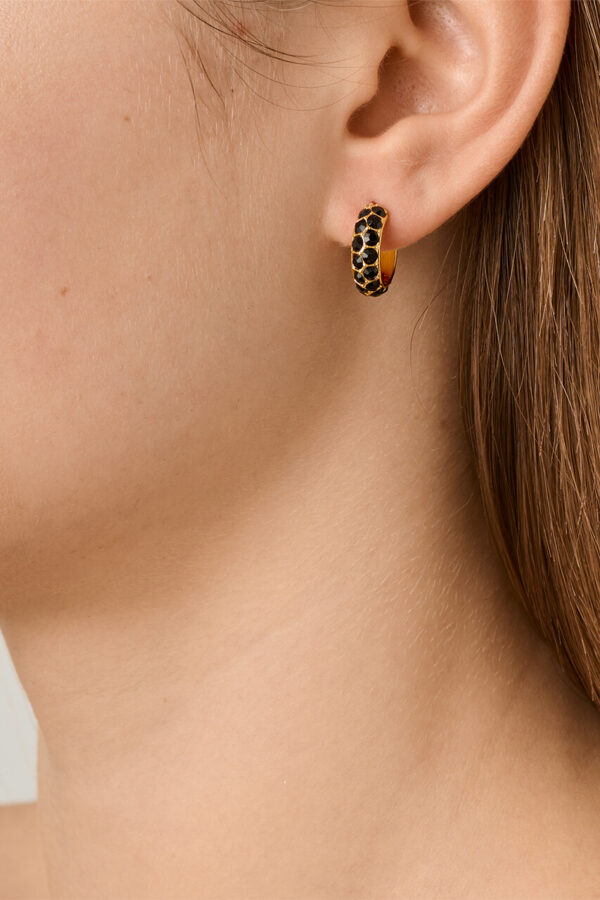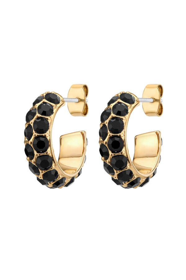 Σκουλαρίκια Dyrberg/kern κρικάκια με μαύρες πέτρες, κατασκευασμένα ορείχαλκο.Γυαλισμένα στην τελειότητα με χρυσό τονισμένο φινίρισμα.Μήκος: 2εκ.