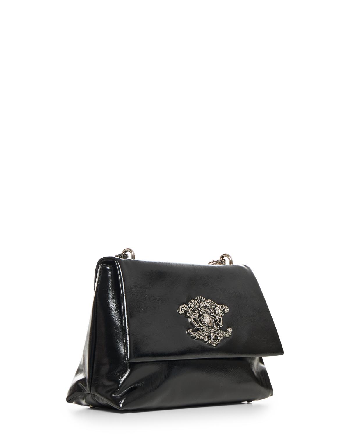 Τσάντα ώμου RICHMOND κατασκευασμένη από συνθετικό δέρμα,με ελαφρώς γυαλιστερή υφή.Στο μπροστινό μέρος είναι διακοσμημένη με ένα γεωμετρικό σχέδιο που δίνει μία πιο ροκ αισθητική.Ασφαλίζει με ένα κουμπί. Διαστάσεις Π:30 Υ:20 Β:11,5