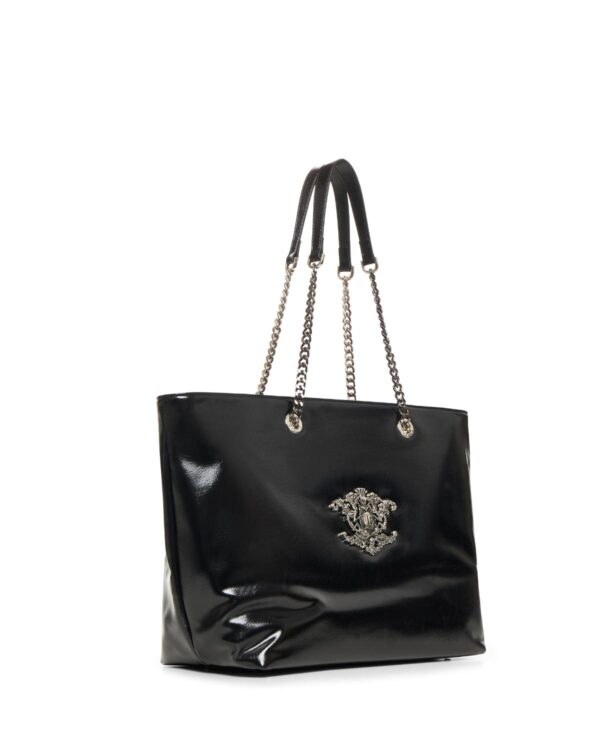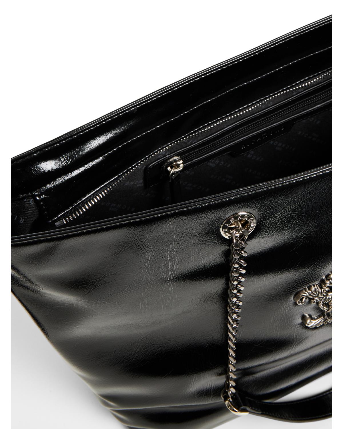 Τσάντα ώμου RICHMOND κατασκευασμένη από συνθετικό δέρμα,με ελαφρώς γυαλιστερή υφή.Στο μπροστινό μέρος είναι διακοσμημένη με ένα γεωμετρικό σχέδιο και το λογότυπο τησ εταιρείας που δίνει μία πιο ροκ αισθητική.Ασφαλίζει με ένα κουμπί. Διαστάσεις Π:33 Υ:27 Β:15