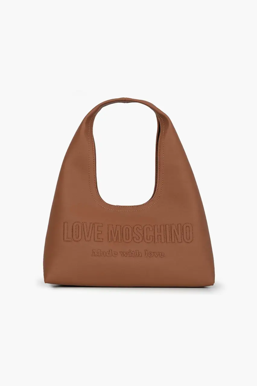 Τσάντα ώμου Love Moschino σε ταμπά χρώμα. Διακοσμημένη με ανάγλυφο λογότυπο στο μπροστινό μέρος.Ασφαλίζεται με μαγνητικό κούμπωμα. Διαστάσεις:Β:12εκ Υ:18εκ Π:30εκ