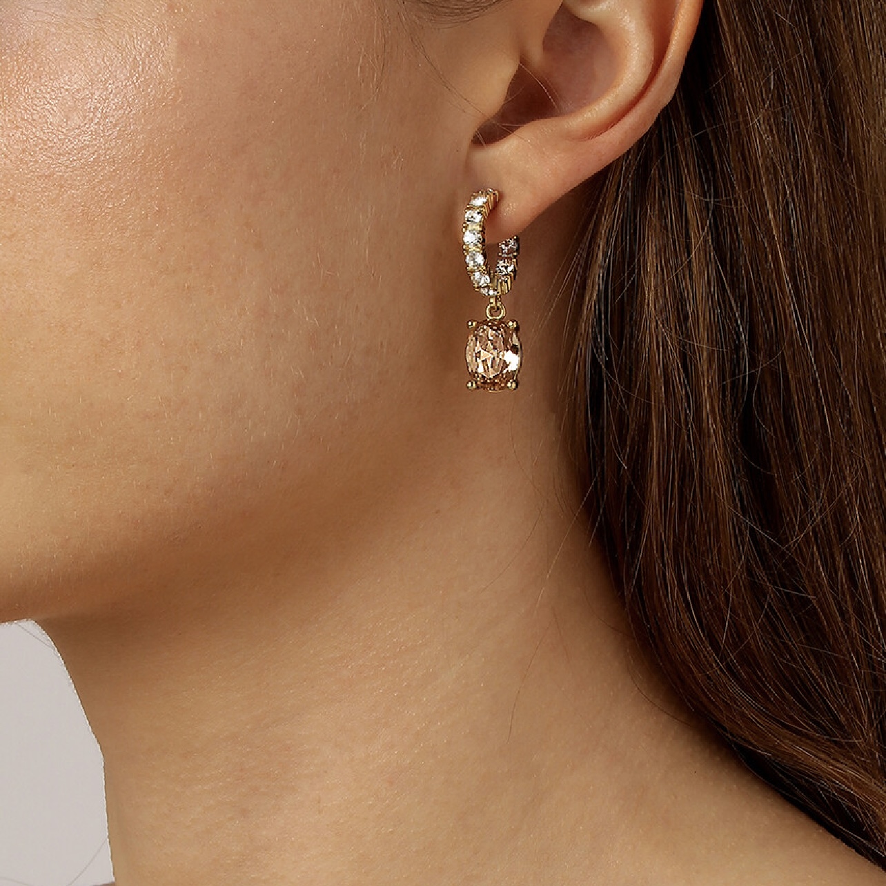 Σκουλαρίκια Dyrberg/kern χρυσού χρώματος, κατασκευασμένα απο ορείχαλκο. Διακοσμημένα με αστραφτερούς, λευκούς κρυστάλλους σε όλη την επιφάνεια και ένα κεντρικό, οβάλ κρυστάλλινο μενταγιόν Swarovski, σε χρώμα ροζ χρυσό. Γυαλισμένα στην τελειότητα με χρυσό τονισμένο φινίρισμα.Κούμπωμα καρφιού απο χειρουργικό ατσάλι. Ένα κομψό κόσμημα με το οποίο θα ξεχωρίζετε. Μήκος: 3,5εκ.
