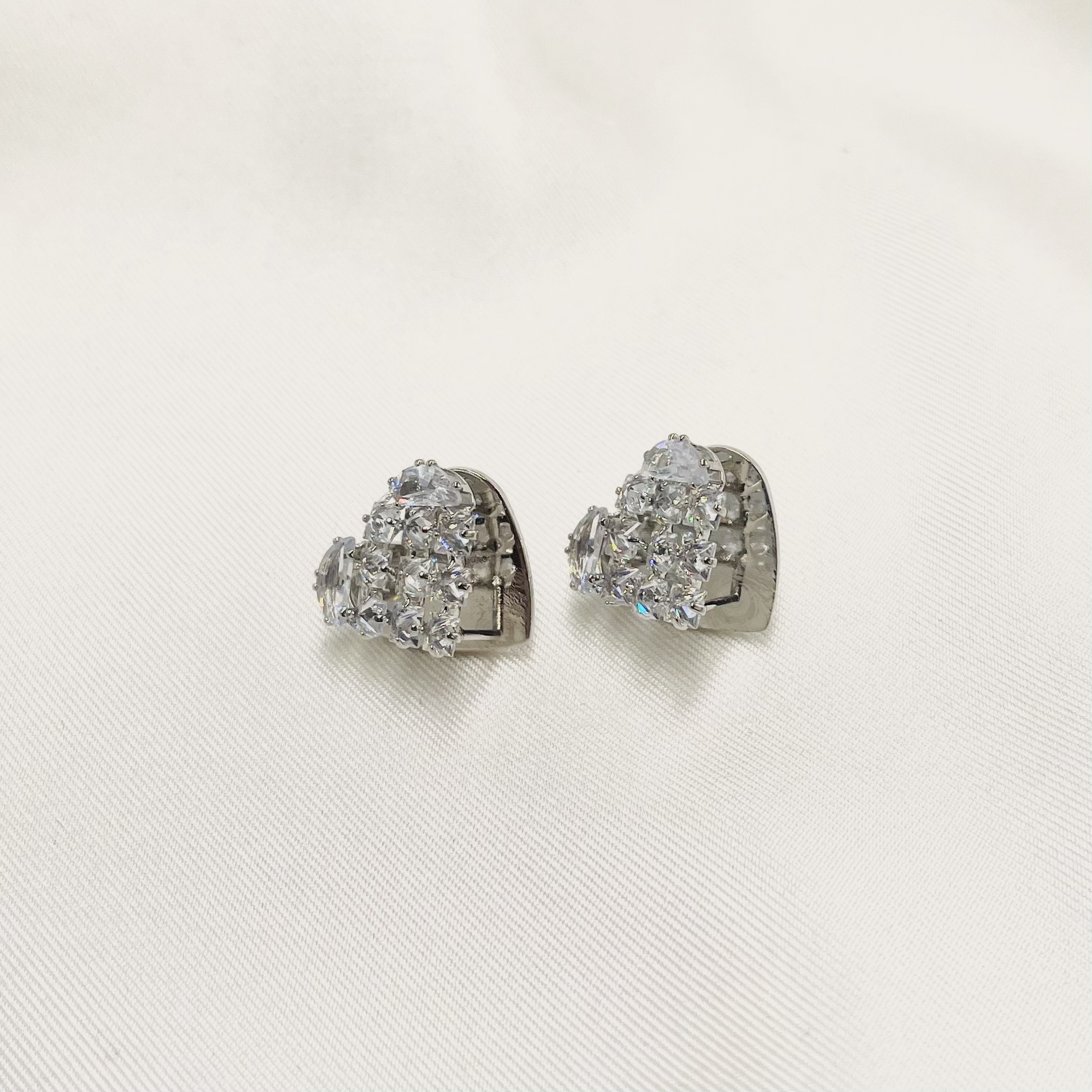 Σκουλαρίκια καρφωτά σε ασημί χρώμα, κατασκευασμένα απο ανοξείδωτο ατσάλι. Διακοσμημένα με ένα τρισδιάστατο σχήμα καρδιάς στολισμένο με κρύσταλλα ζιργκόν. Διαθέτουν κούμπωμα καρφιού. Διάσταση: 1,2εκ.