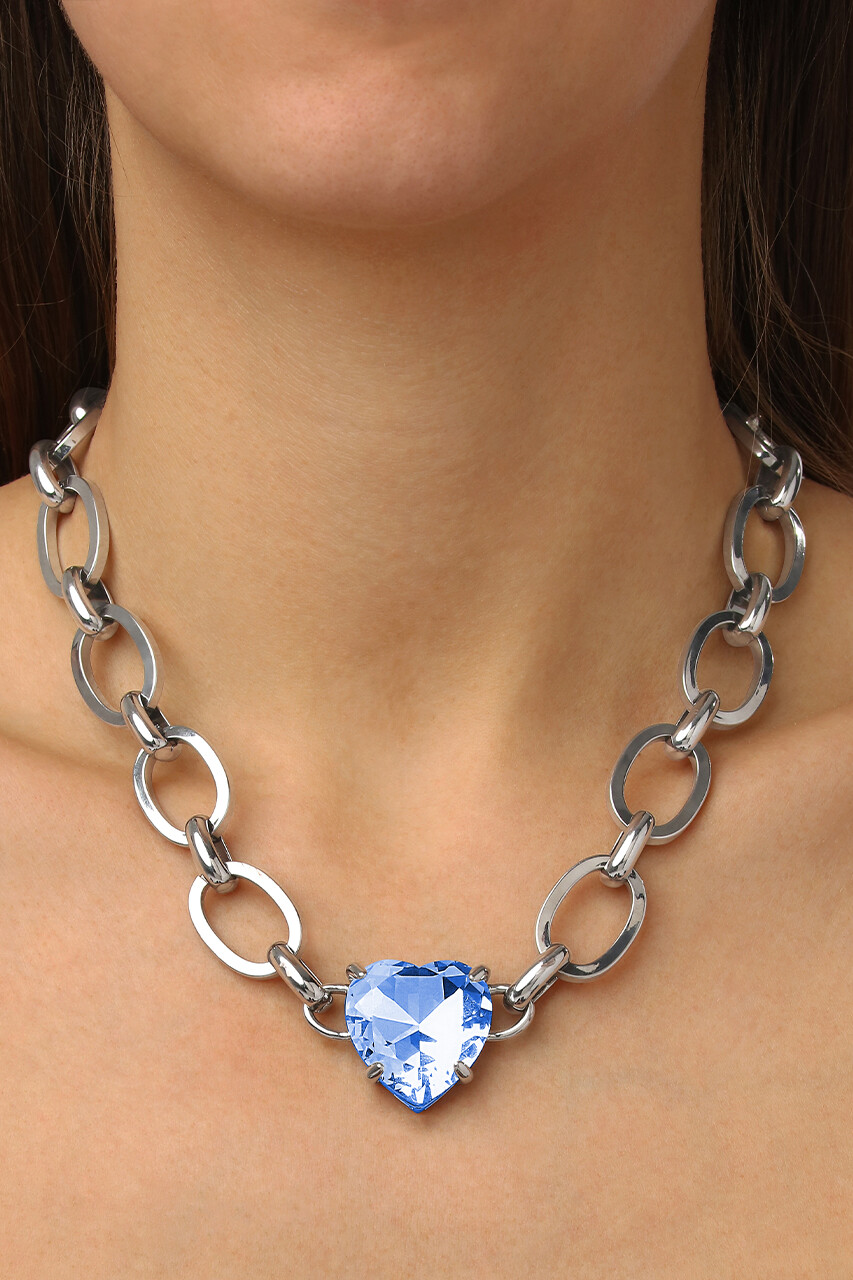 Κολιέ Dyrberg/kern ασημί χρώματος, κατασκευασμένο απο ανοξείδωτο ατσάλι. Διακοσμημένο με μια μεγάλη πέτρα σε σχήμα καρδιάς. Γυαλισμένο στην τελειότητα με ασημίτονισμένο φινίρισμα.Μπορεί να φορεθεί νκαι σαν choker.Διάσταση 42 εκ + 5 προέκταση.
