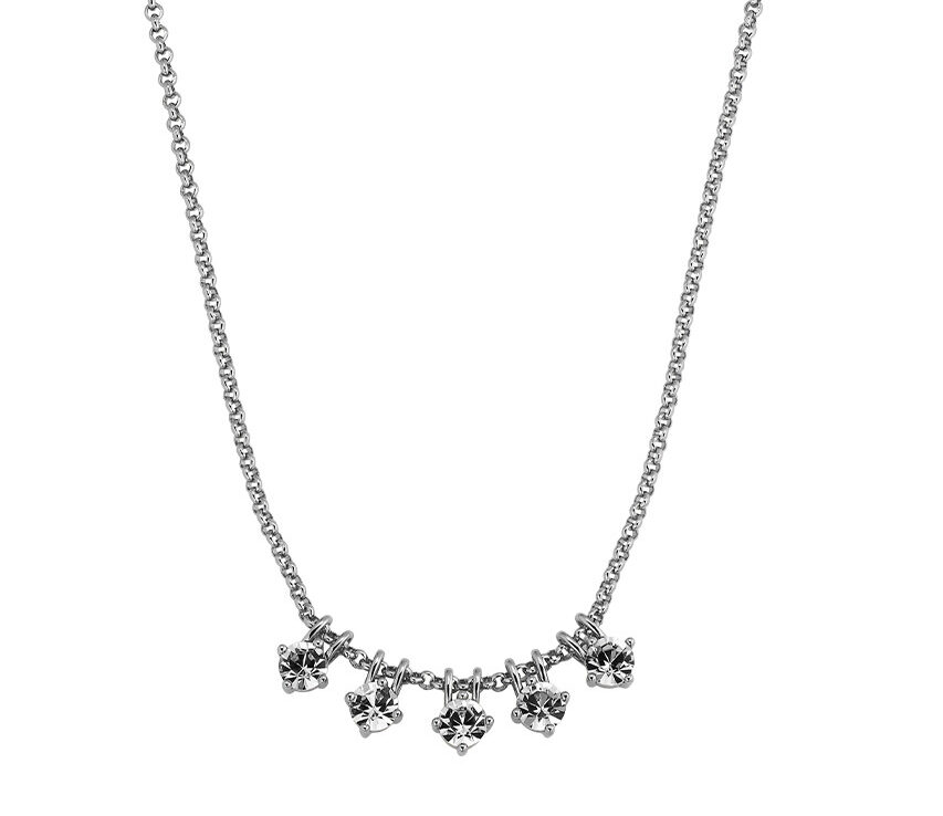 Κολιέ Dyrberg/kern ασημί χρώματος, κατασκευασμένο απο ανοξείδωτο ατσάλι. Διακοσμημένο με λευκές πέτρες. Γυαλισμένο στην τελειότητα με ασημί τονισμένο φινίρισμα.Διάσταση 42 εκ + 5 προέκταση.