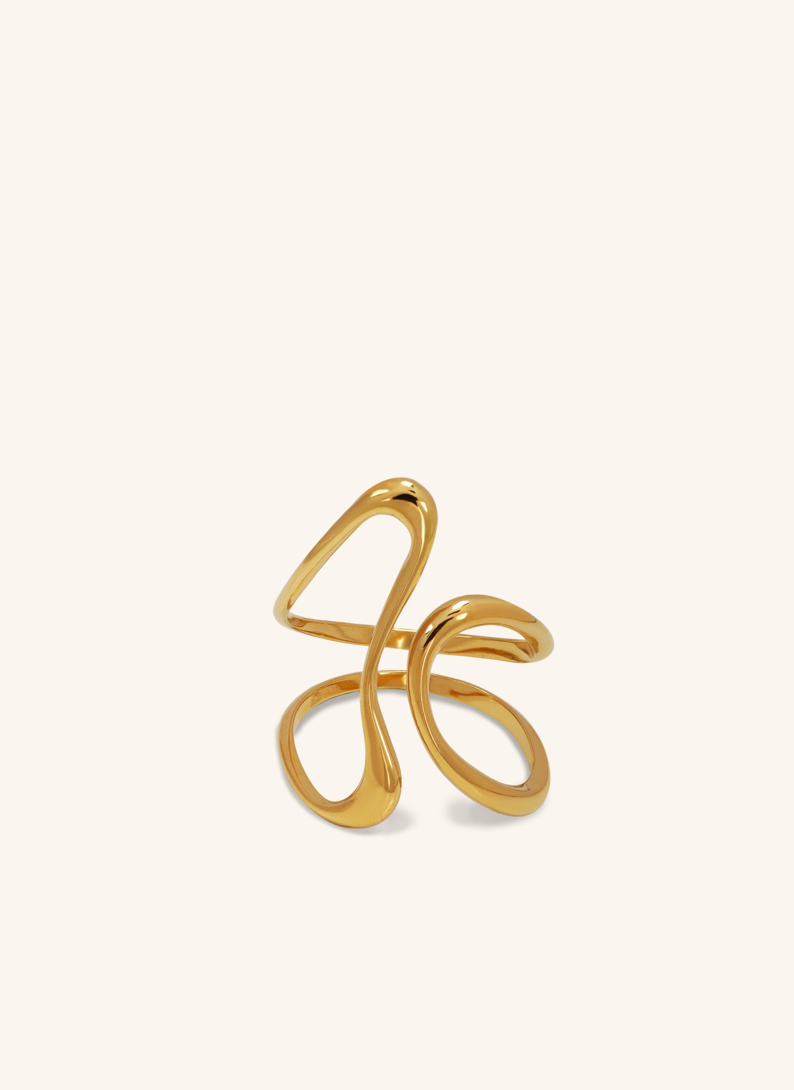 Δαχτυλίδι με κυματιστή, αφαιρετική γραμμή – ένα ανάλαφρο σχήμα που δίνει αρχιτεκτονική κομψότητα σε κάθε χέρι. Φόρεσε το μόνο του ή με λεπτές βέρες.