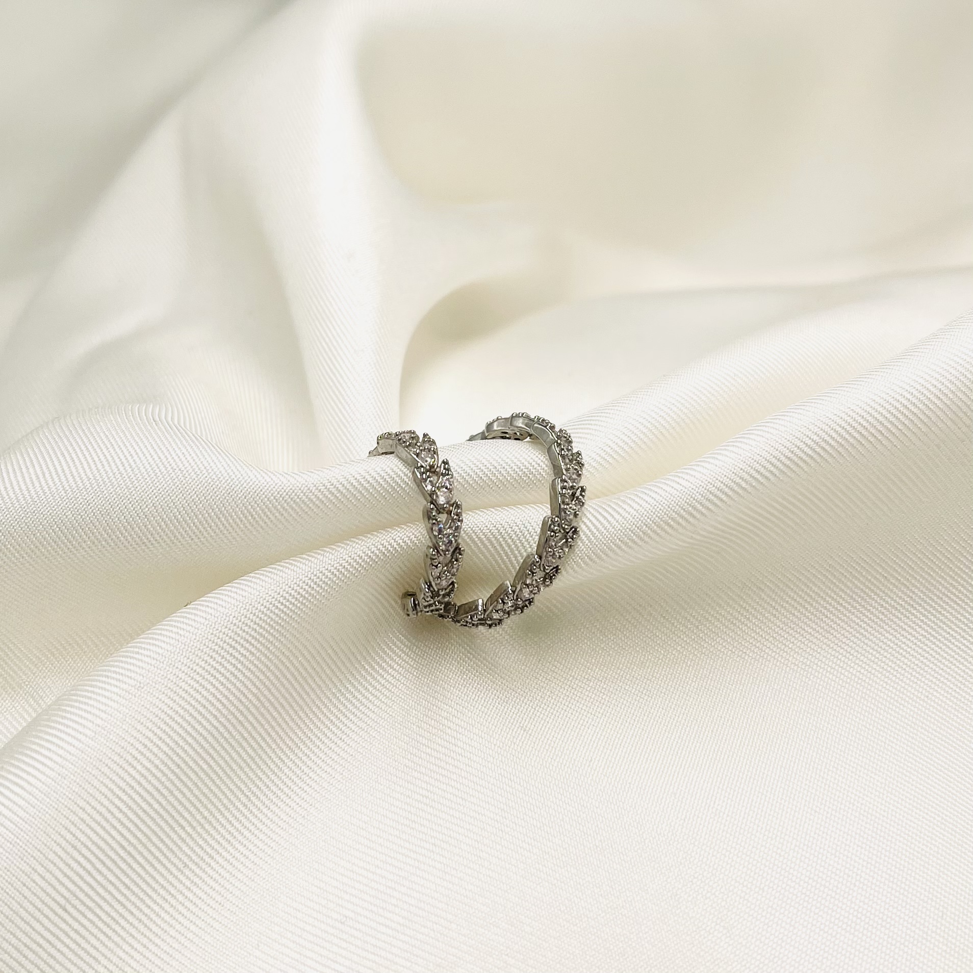 Earcuff σε ασημί χρώμα, κατασκευασμένο απο ανοξείδωτο ατσάλι. Διακοσμημένο με 2 κρίκους οι οποίοι είναι στολισμένοι με κρύσταλλα ζιργκόν. Συνδυάστε το με σκουλαρίκια της συλλογής μας για να απογειώσετε τα ear combo σας. Αυξομειώνεται μερικώς.