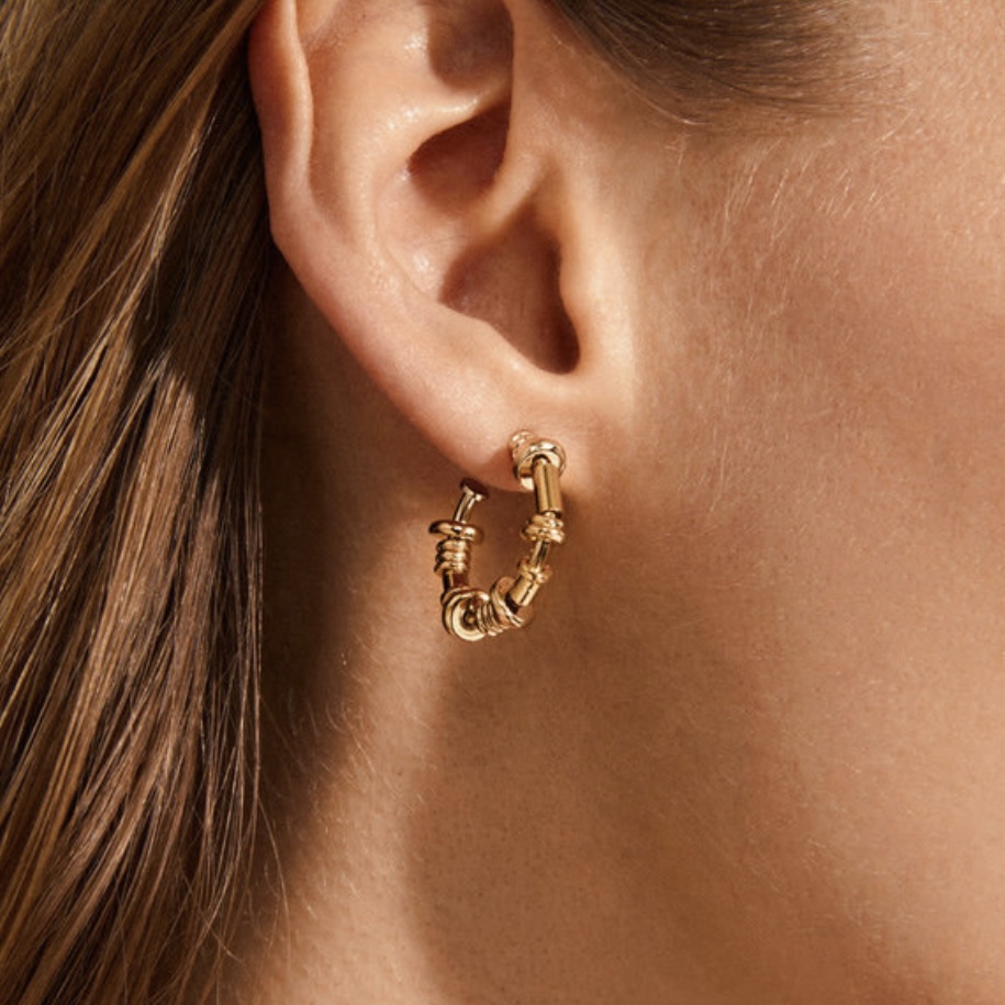 Σκουλαρίκια κρίκοι PILGRIM σε χρυσό χρώμα, επαργυρωμένα και κατασκευασμένα 99% ορείχαλκος και 1% επιμετάλλωση. Φινιρισμένα με ειδικό βερνίκι για την μέγιστη αντοχή στον χρόνο. Διακοσμημένα με κρικάκια, σε διάφορα σχήματα και μεγέθη. Ένας τολμηρός σχεδιασμός για όσους θέλουν να κερδίζουν τις εντυπώσεις. Διάσταση: 2,2εκ.