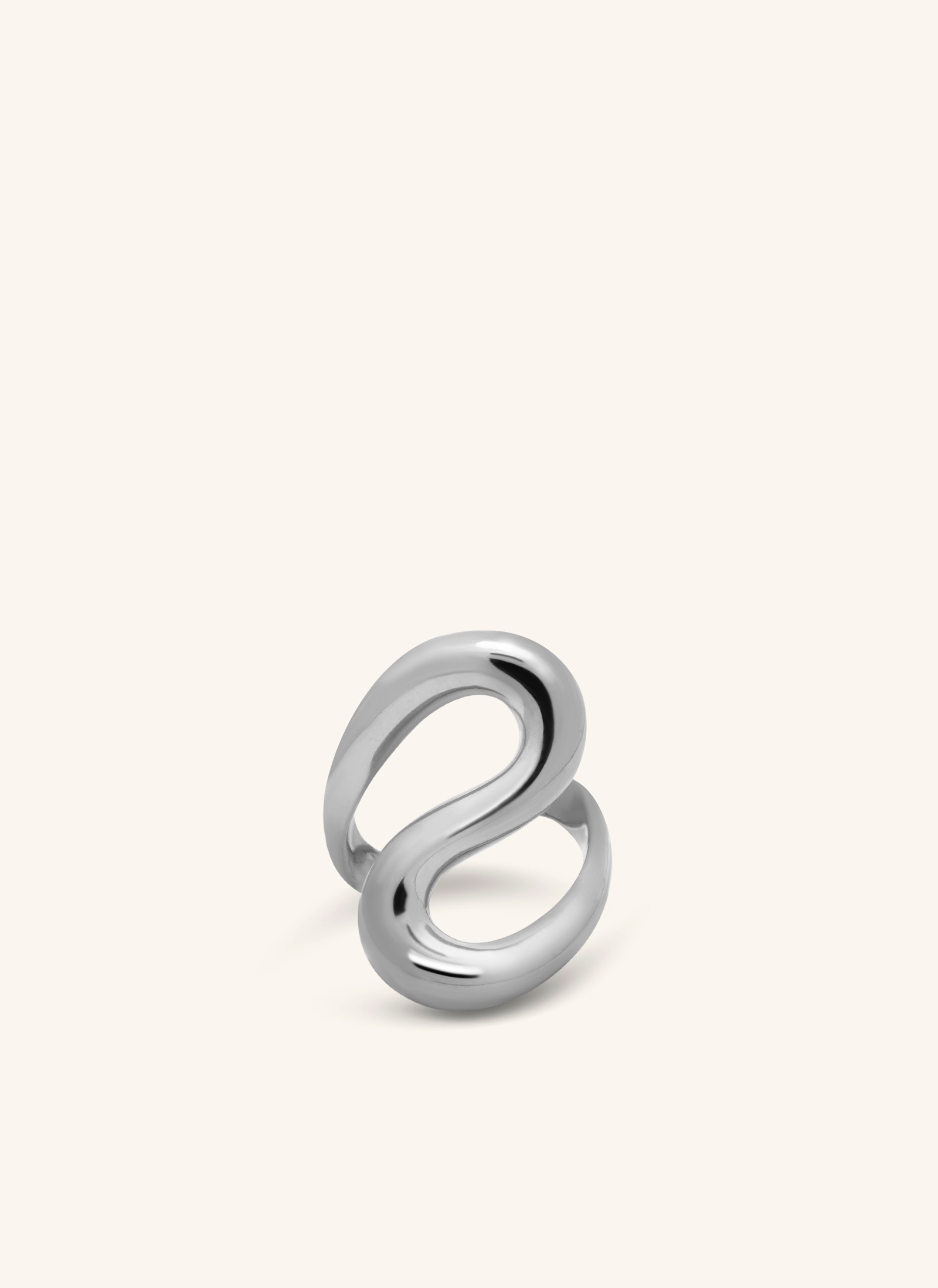 Δαχτυλίδι με κυματιστή καμπύλη που αγκαλιάζει αρμονικά το δάχτυλο. Μοντέρνο και κομψό, συνδυάζεται εύκολα με άλλα minimal κοσμήματα.