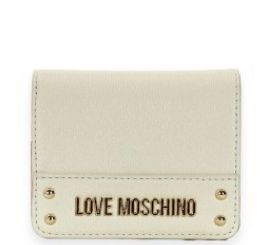 Πορτοφόλι Love Moschino σε εκρού χρώμα, κατασκευασμένο απο συνθετικό δέρμα. Διακοσμημένο με μια εκρού πλάκα στο μπροστινό μέρος πάνω στην οποία είναι χαραγμένο το λογότυπο του brand. Στο εσωτερικό του διαθέτει μία αποθηκευτική τσέπη η οποία κλείνει με μαγνητικό κούμπωμα και όλες τις προδιαγραφόμενες θήκες καρτών και εγγράφων. Ασφαλίζεται με φερμουάρ. Διαστάσεις: Π:11,5εκ, Υ:9,5εκ, Β:3,εκ.