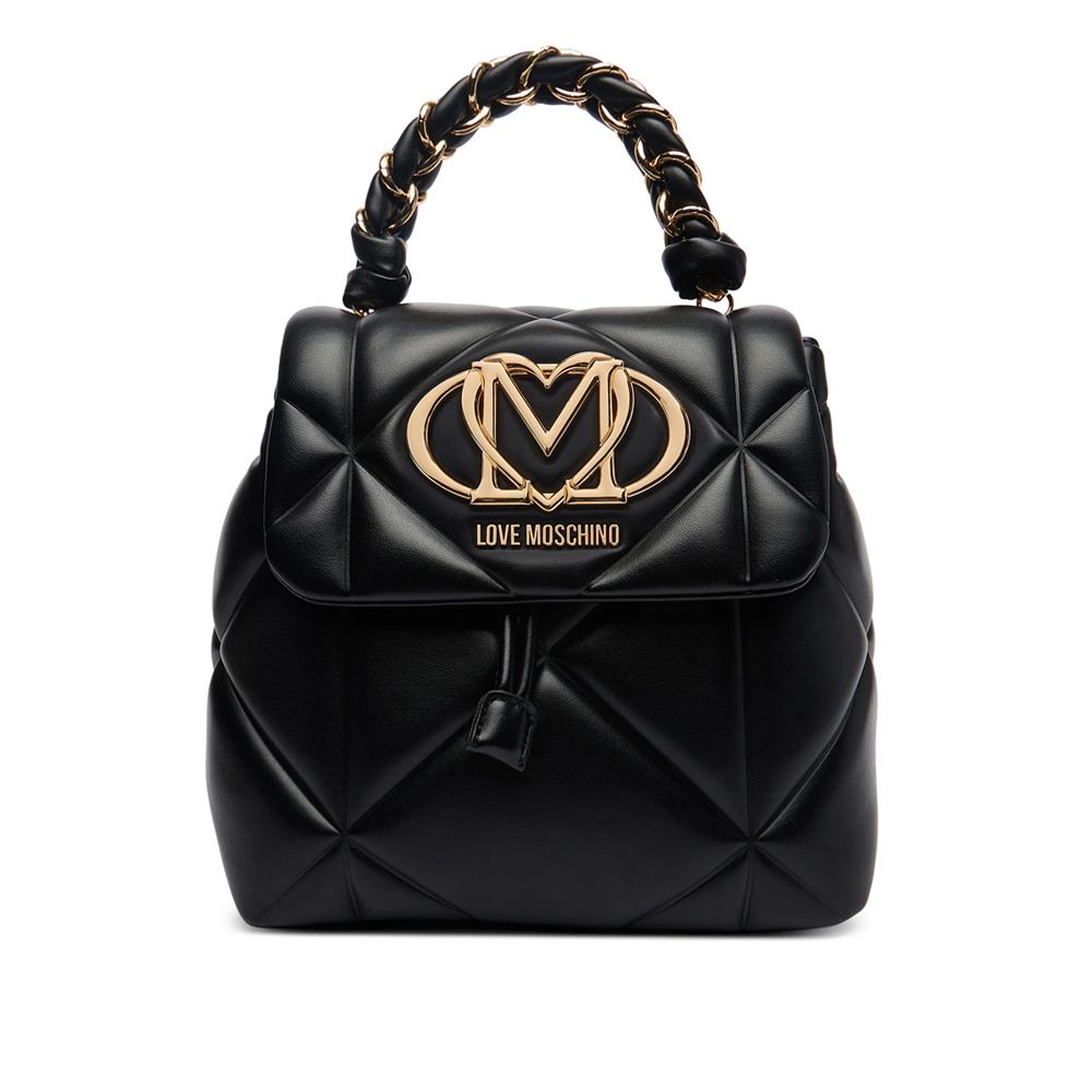 Γυναικείο καπιτονέ backpack Love Moschino, κατασκευασμένο από faux leather. Διαθέτει σταθερή λαβή με αλυσίδα για κράτημα στο χέρι, δύο ρυθμιζόμενους ιμάντες πλάτης, μία κύρια θήκη, κλείσιμο με κλαπέτα, μαγνητικό κούμπωμα και κορδόνι περίσφιξης, εσωτερικό τσεπάκι με φερμουάρ, μία εξωτερική τσέπη με φερμουάρ πίσω, καθώς και μεταλλικό λογότυπο μπροστά.