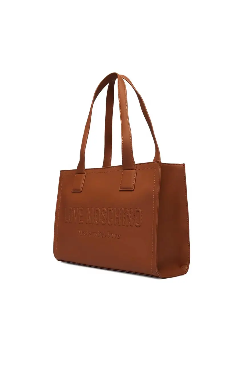 Τσάντα ώμου Love Moschino σε ταμπά χρώμα. Διακοσμημένη με ανάγλυφο λογότυπο στο μπροστινό μέρος.Ασφαλίζεται με μαγνητικό κούμπωμα. Διαστάσεις:Β:12εκ Υ:25εκ Π:35εκ