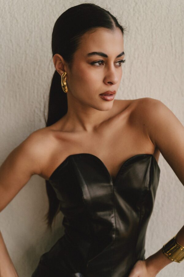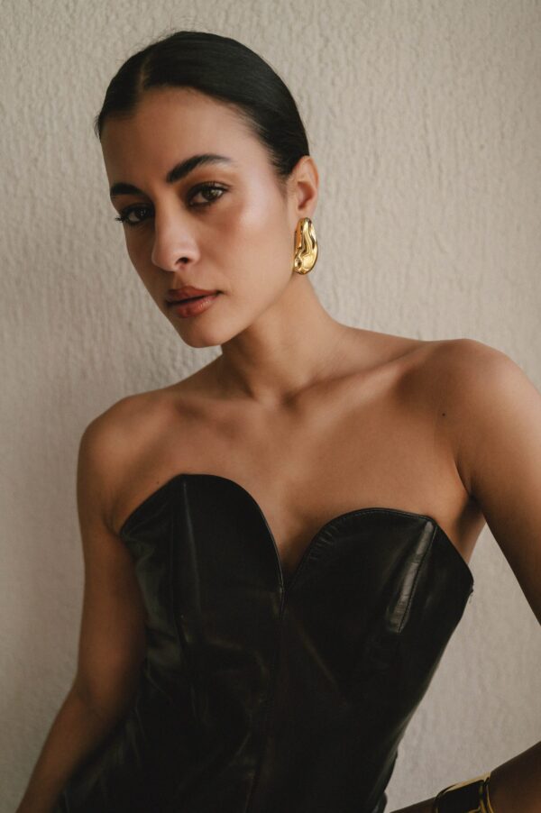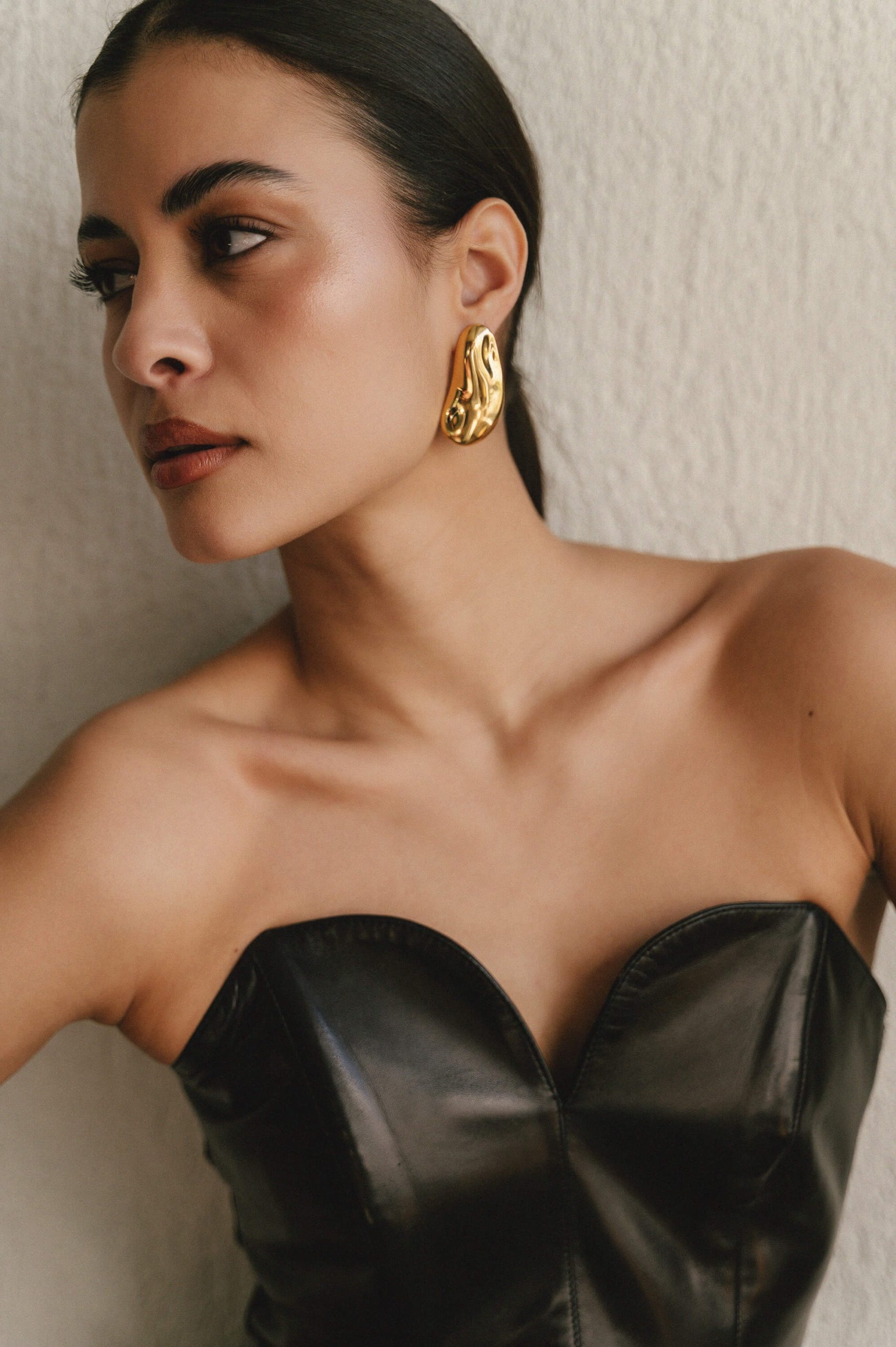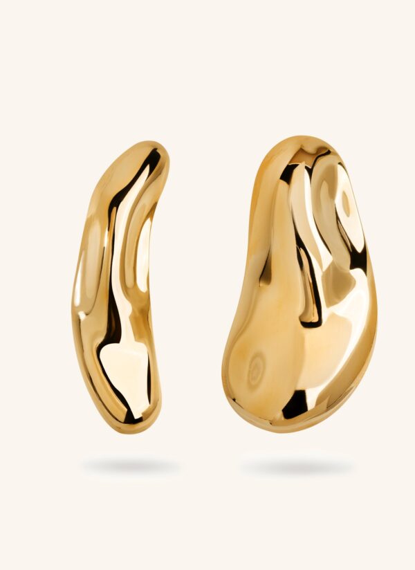 Σκουλαρίκια με αφαιρετικό σχήμα και καθαρό χρυσό φινίρισμα. Τέλεια για sleek εμφανίσεις με μαζεμένα μαλλιά και λινό πουκάμισο.
