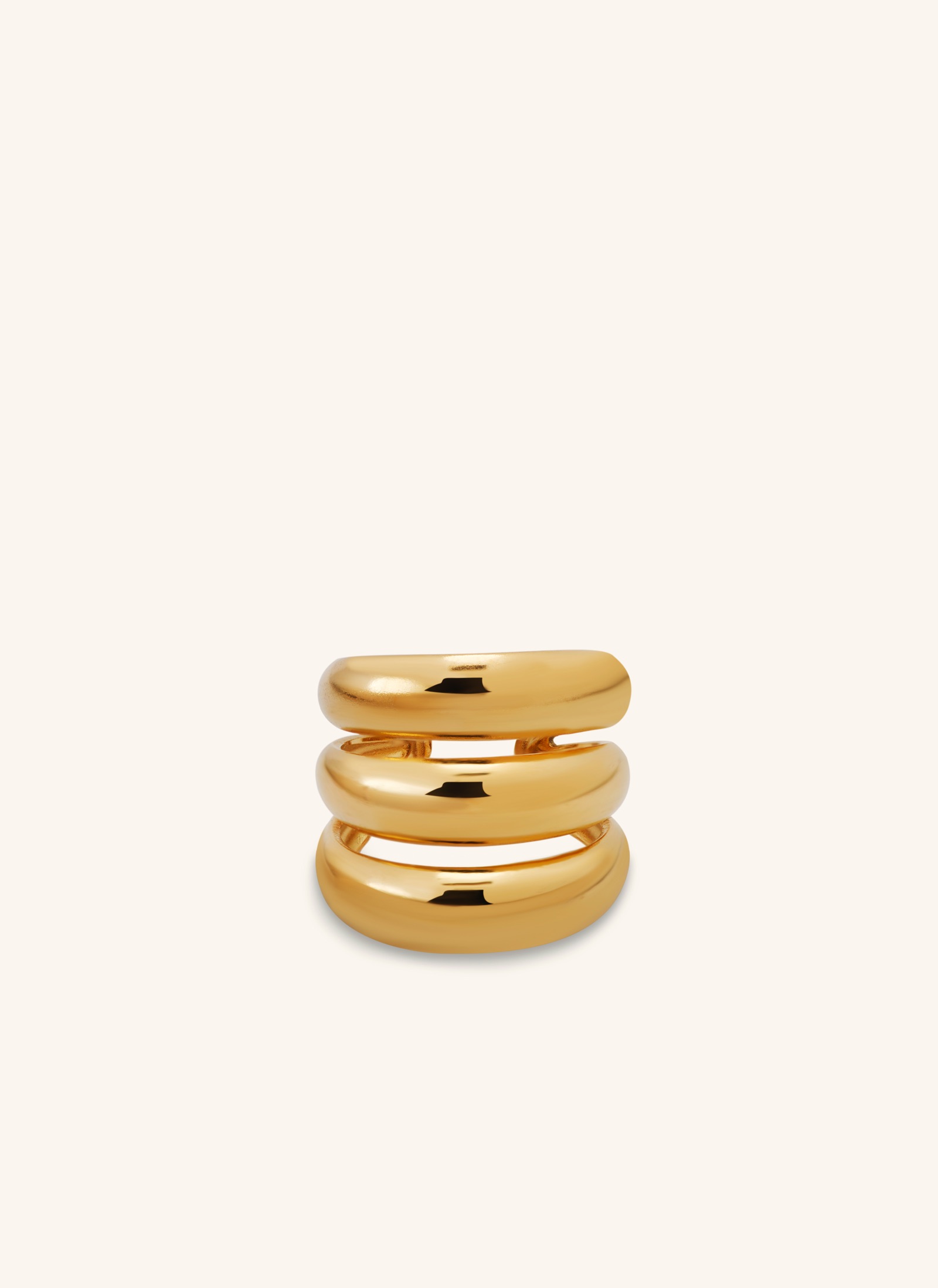 Δαχτυλίδι από ατσάλι με μοντέρνο τριπλό σχεδιασμό που αγκαλιάζει κομψά το δάχτυλο. Διαθέσιμο σε χρυσό, ασημί ή δίχρωμο συνδυασμό, είναι η λεπτομέρεια που δίνει στο στυλ σου μοντέρνο edge και minimal φινέτσα.