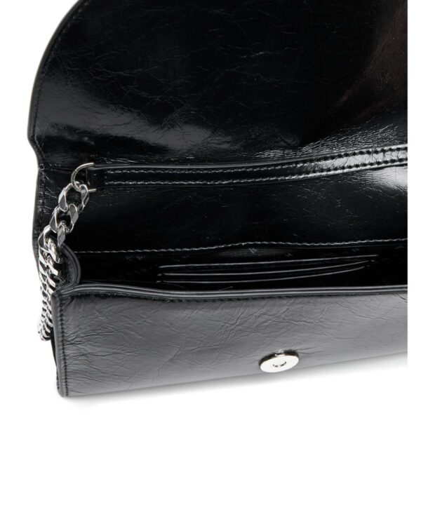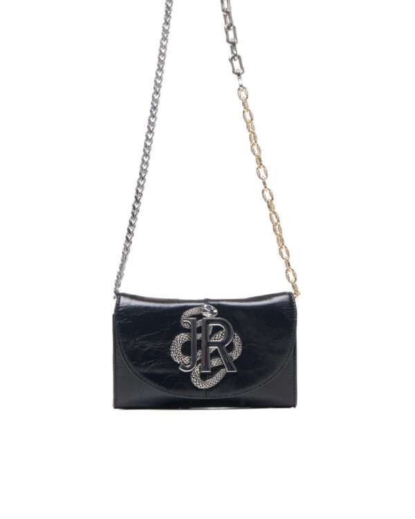 Τσάντα ταχυδρόμου RICHMOND σε μαύρο χρώμα,κατασκευασμένη από φυσικό δέρμα,με γυαλιστερή υφή.Στο μπροστινό μέρος είναι διακοσμημένη με το λογότυπο τησ εταιρείας που δίνει μία πιο ροκ αισθητική.Ασφαλίζει με κουμπί. Διαστάσεις Π:21 Υ:12 Β:4