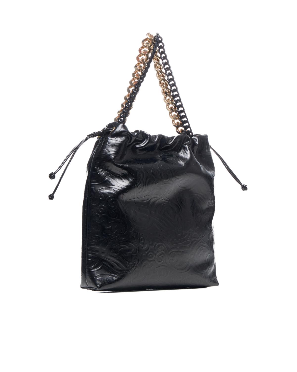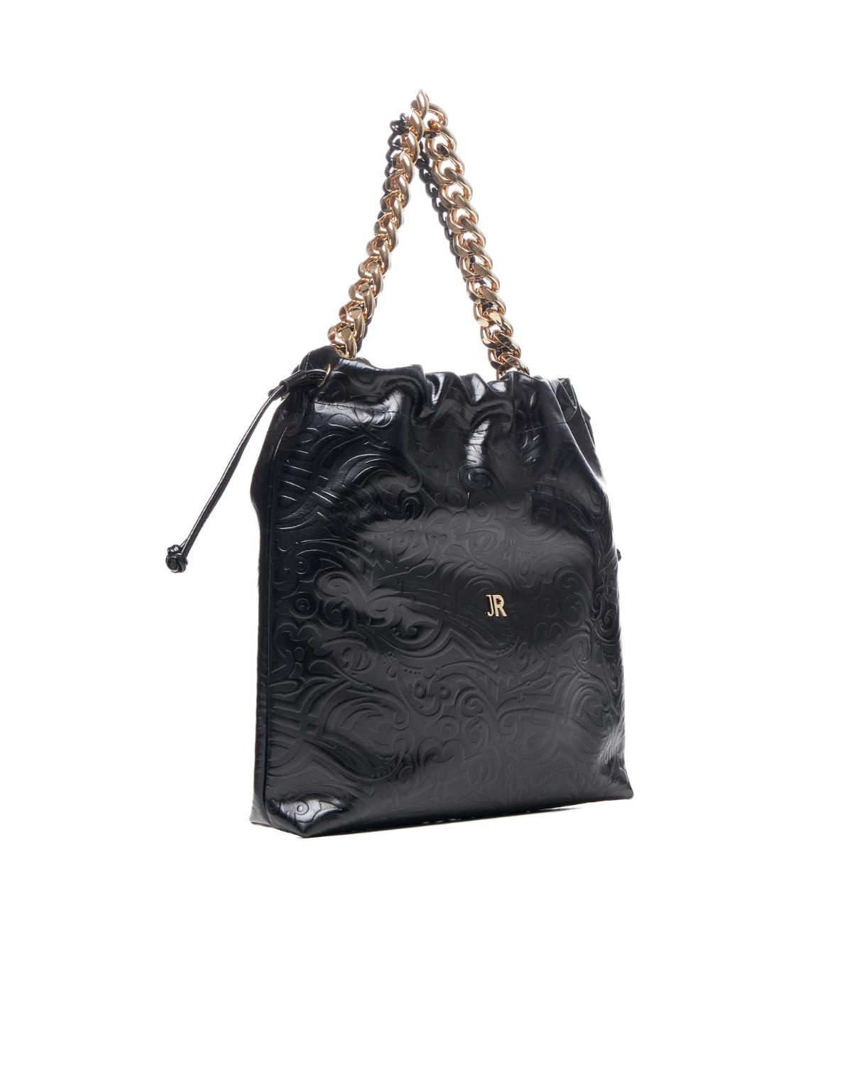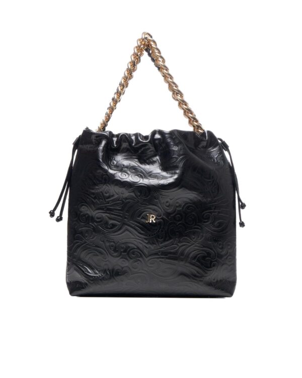 Τσάντα χειρός RICHMOND σε μαύρο χρώμα με χρυσές λεπτομέρειες,κατασκευασμένη από φυσικό δέρμα,με γυαλιστερή και ελαφρώς ανάγλυφη υφή.Στο μπροστινό μέρος είναι διακοσμημένη με το λογότυπο τησ εταιρείας. Διαστάσεις Π:33  Υ:33 Β:7